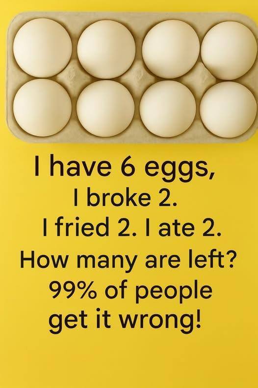 “I broke 2. I fried 2. I ate 2. How many eggs are left?”